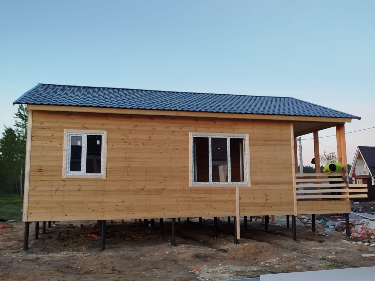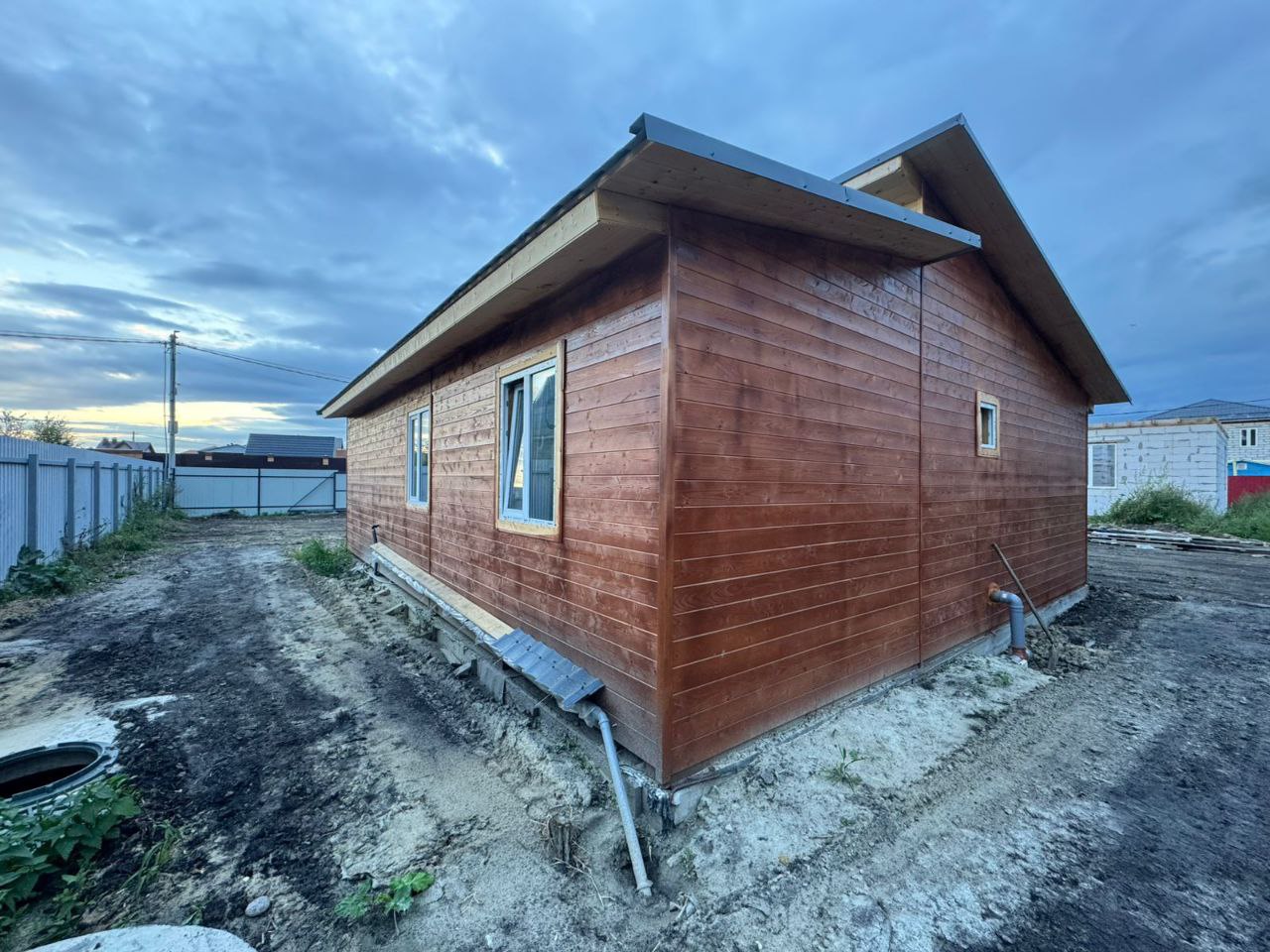 (чаще всего свайно-винтового — с учётом геологии), сборка силового каркаса, устройство перекрытий и кровли.