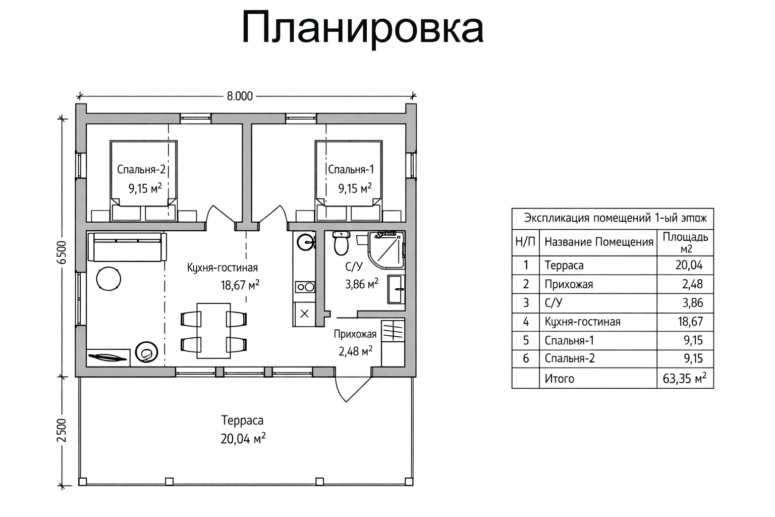 Жилая площадь — 63,35 м²