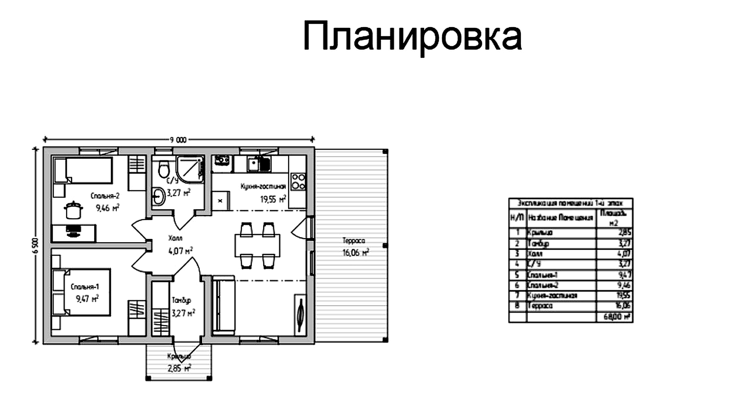 ПРОЕКТ каркасного дома «Баркас 67.9 м²»